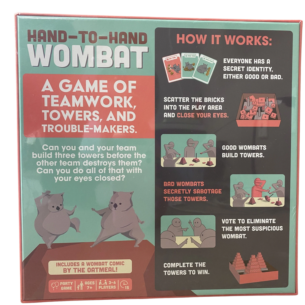Contents: 3 Wombat towers, A Boundary, 10 Wombat Cards, 6 Reference Cards, Score Card, 2 Point Trackers, Comic book.